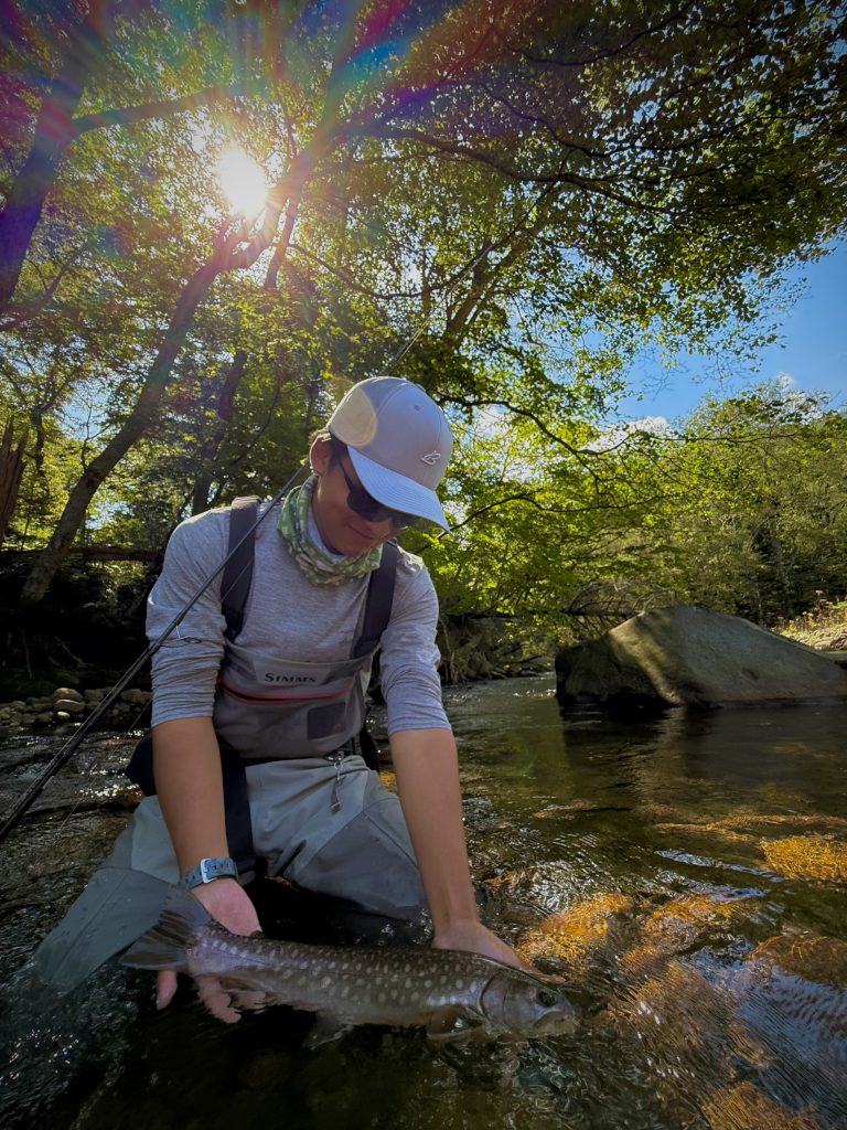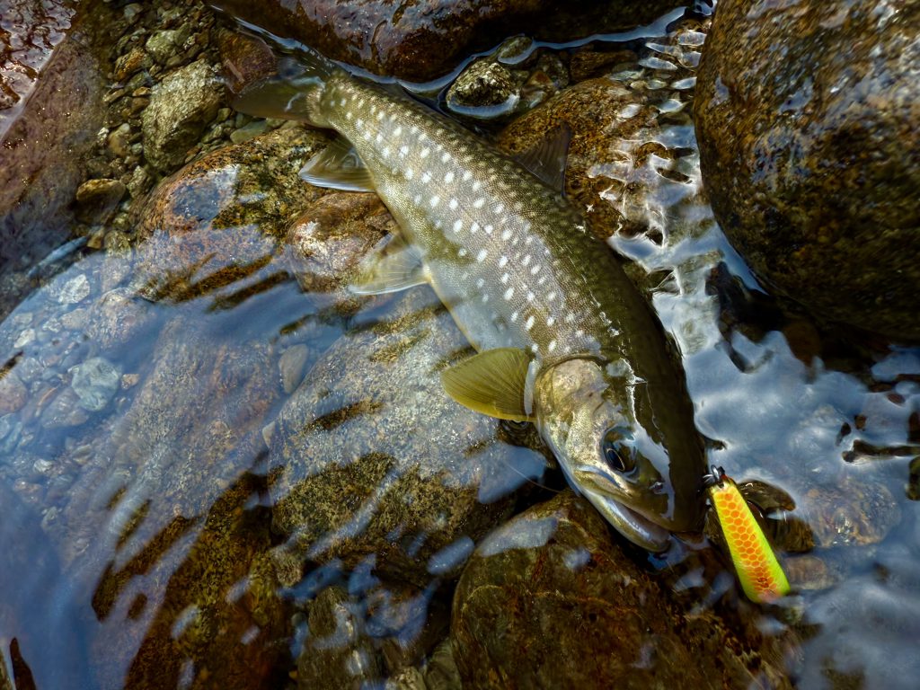 釣り始めて早々にダリア45sでヒットしたのは初秋感じる綺麗なイワナ。